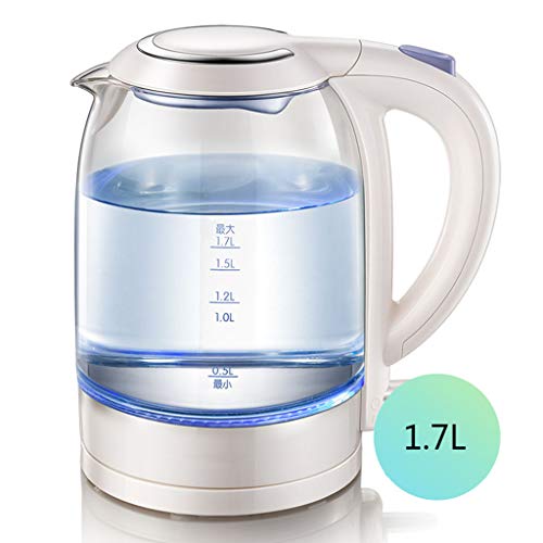 MDL Bouilloire lectrique bleue en verre de verre de borosilicate de 1.7L, coupure automatique de mnage